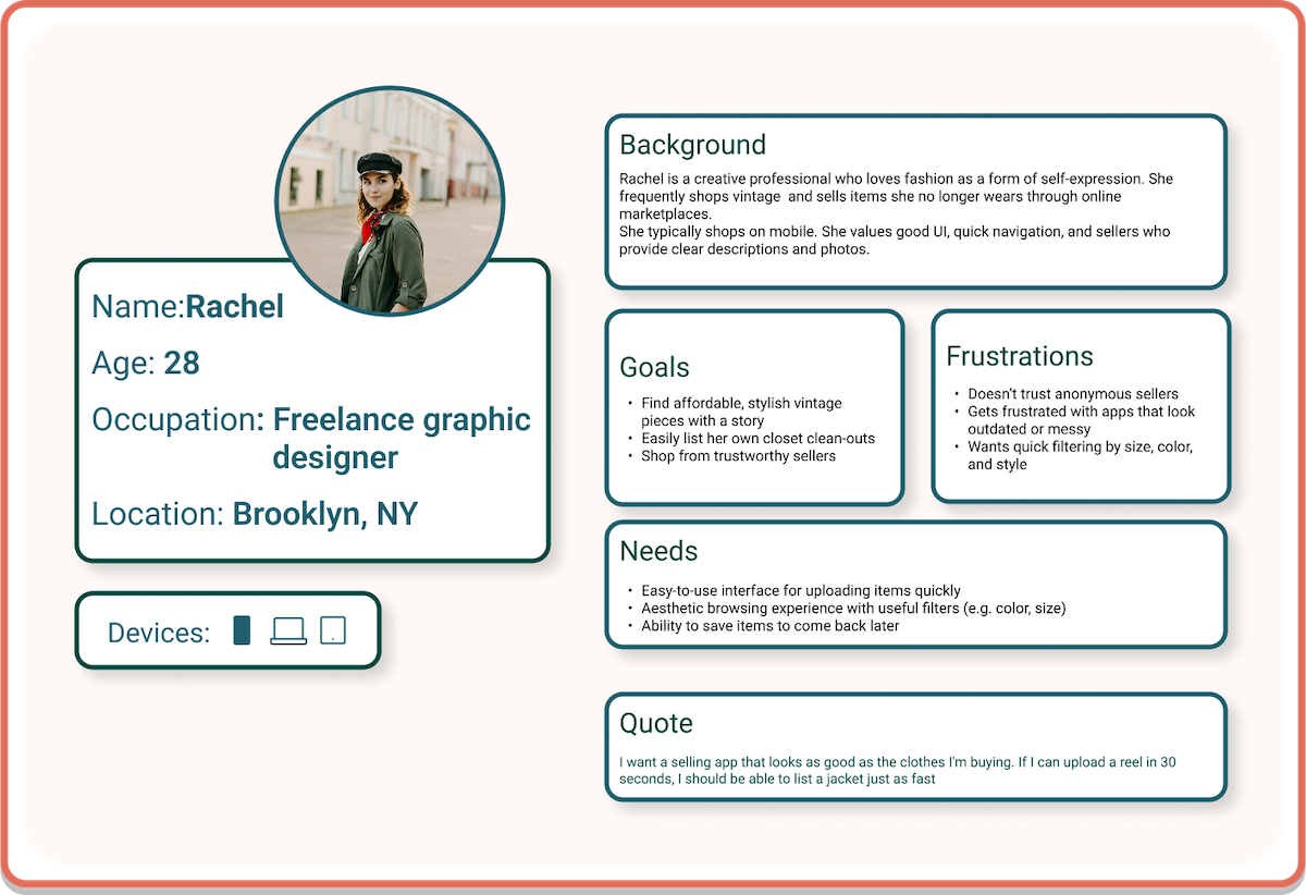 - Design the UI for the mobile version of a vintage clothing sales app