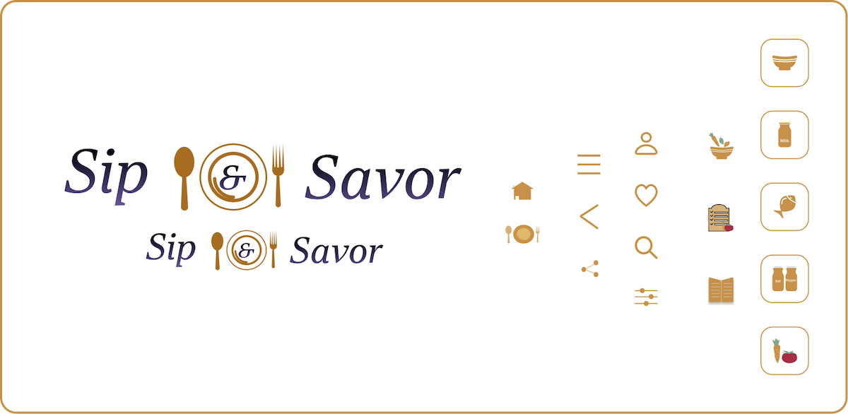 The design invites the user to enjoy both food and drinks. The gold color at the center adds a touch of sophistication to the app. The logo is fully scalable to fit any screen size. All icons were custom-designed by the creator.