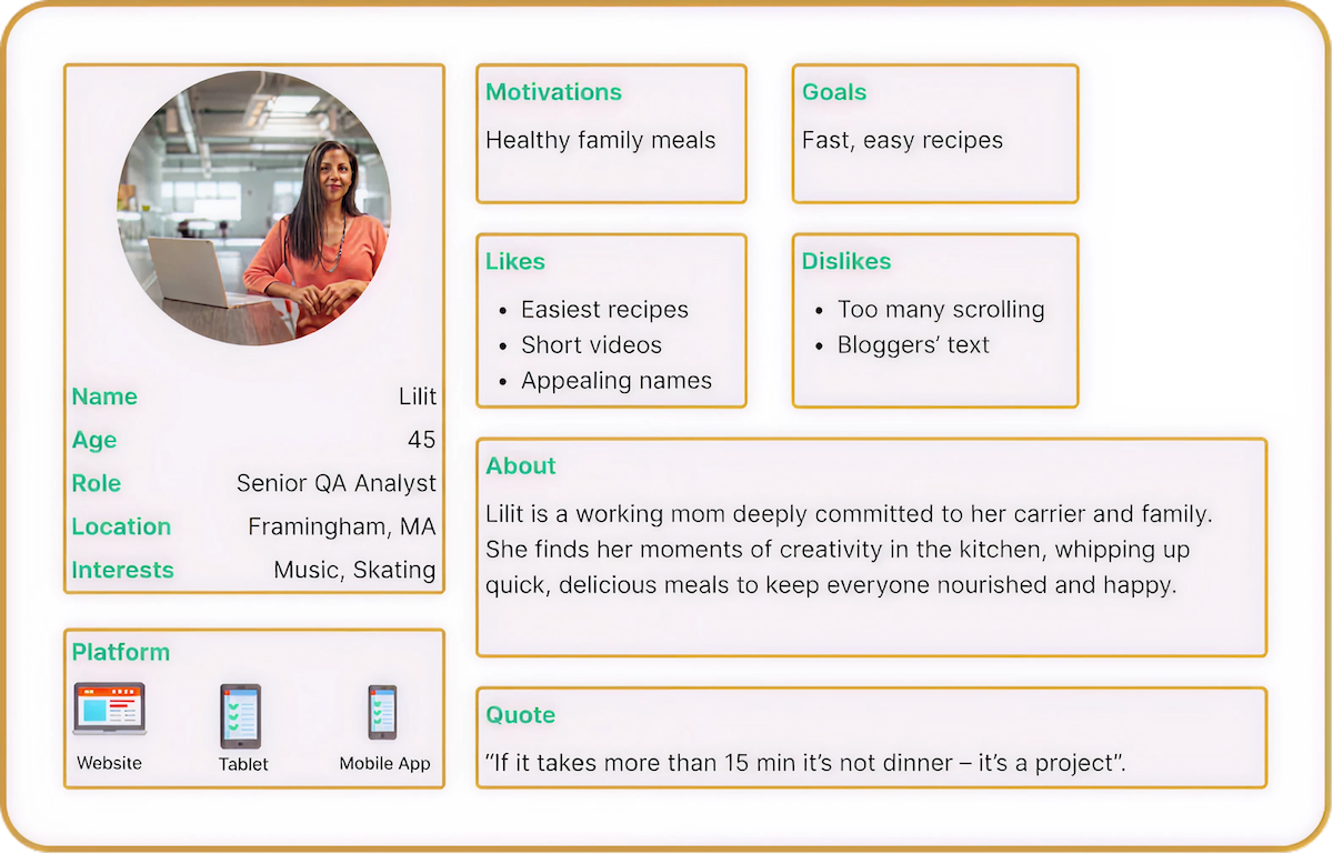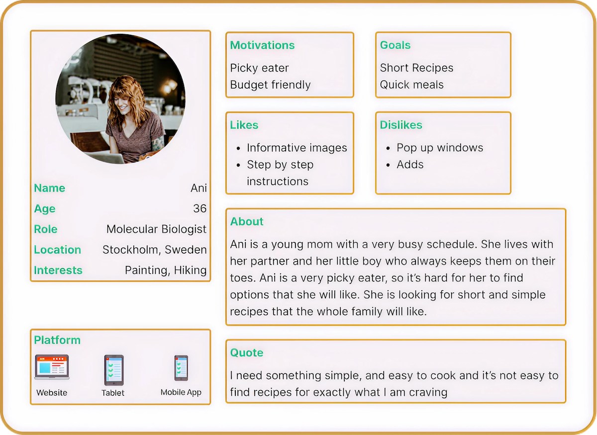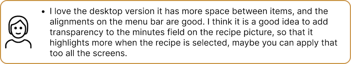 - Competitive Analysis: Reviewed 3 recipe apps to assess navigation, usability, and feature sets.
